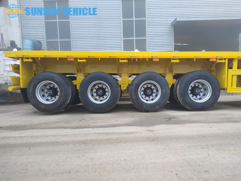 Khi các loại rơ moóc tiêu chuẩn đạt đến giới hạn của chúng tôi, thì... xe moóc sàn phẳng 4 trục Bằng cách phân bổ tải trọng 60.000kg trên bốn trục 13 tấn, chúng tôi cung cấp độ ổn định vượt trội và tuân thủ các quy định nghiêm ngặt về tải trọng trục ở nhiều khu vực. Cho dù bạn đang vận chuyển cuộn thép, máy móc xây dựng hay hàng hóa rời, khung gầm thép cường độ cao được gia cố đảm bảo không bị biến dạng dưới áp lực tối đa.
